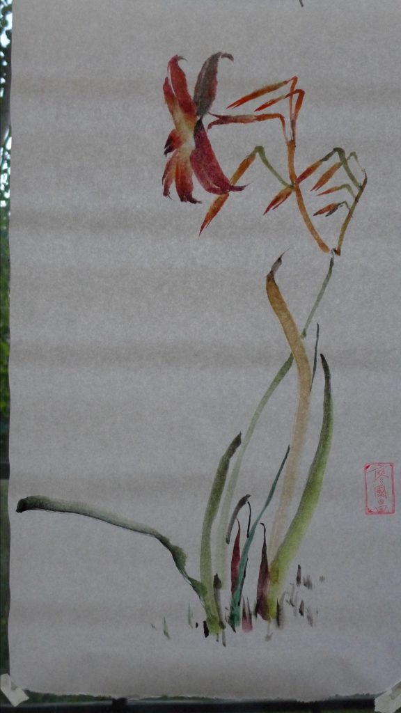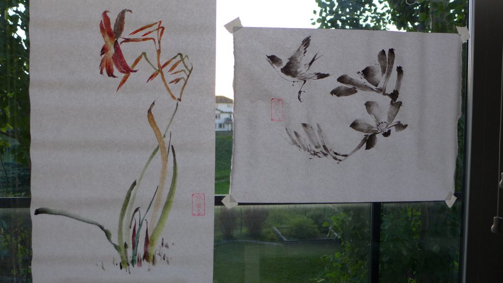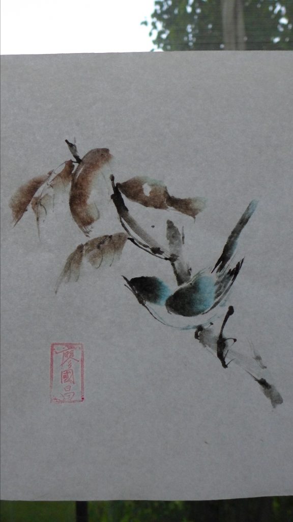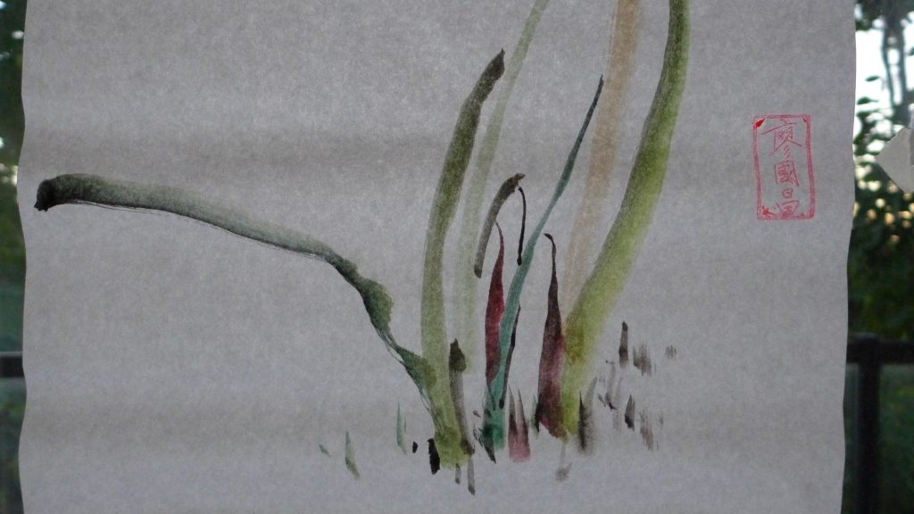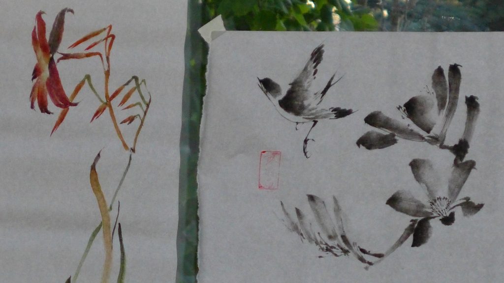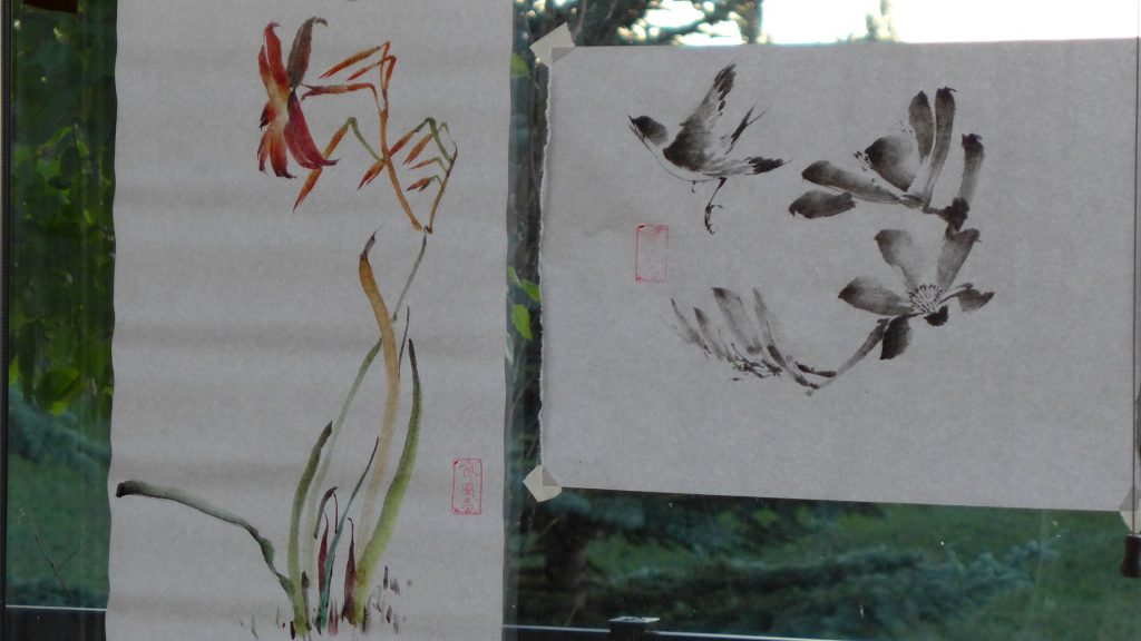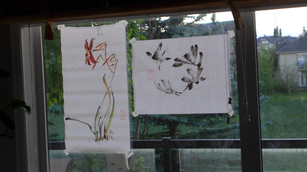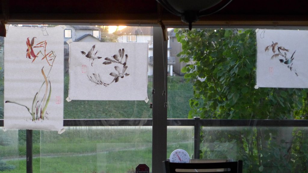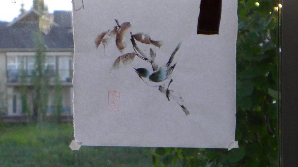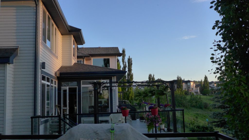 Panasonic LX-7. My neighbors wanted to know what I was painting. Therefore I taped my last painting to face it towards their house. Hence the back of the painting was shown.